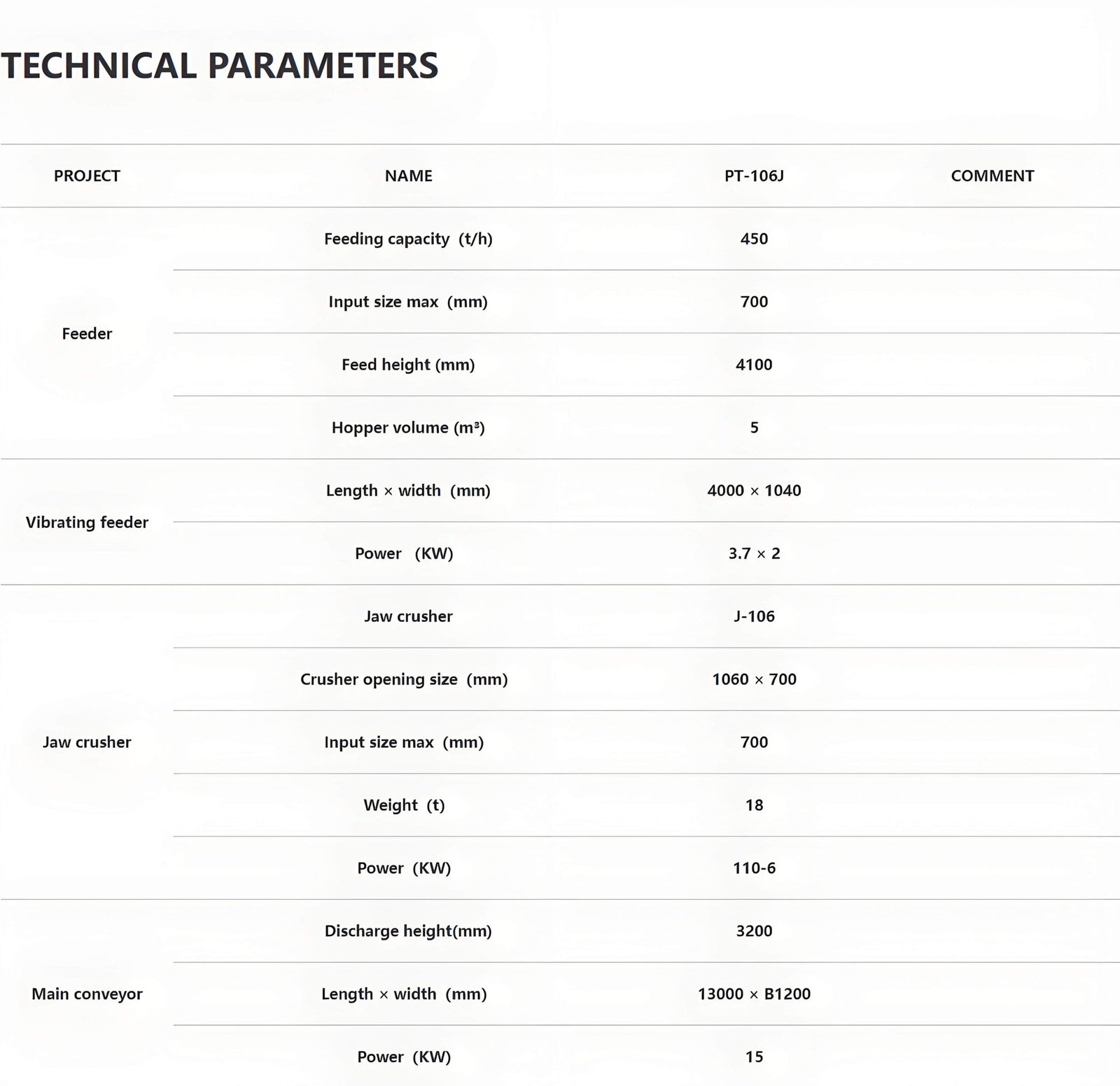 Optional: side conveyor belt, iron remover.
